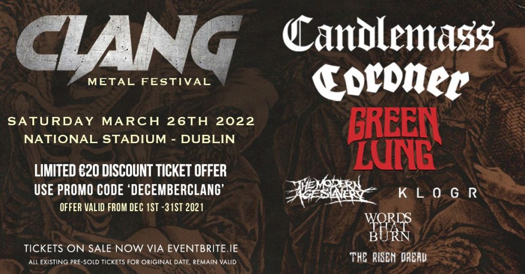 Tickets for Clang Metal Festival are on sale NOW via Eventbrite from €64.90 (including the booking fee). However, if you use ‘DecemberClang’ there’s a €20 discount offer this December only.