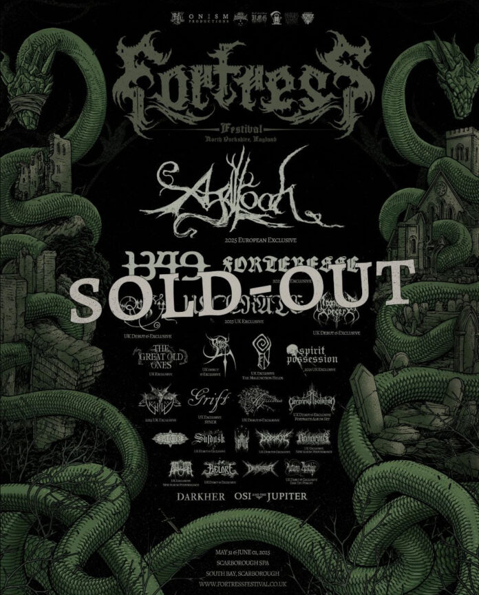 Fortress Festival, the biggest black metal event in the UK, which will take place on 31st May – 1st June 2025 at Scarborough Spa in Scarborough, North Yorkshire, is now sold out. All available weekend passes and limited day tickets have been snapped up, cementing Fortress Festival as a must-attend event for black metal enthusiasts across the UK and beyond.