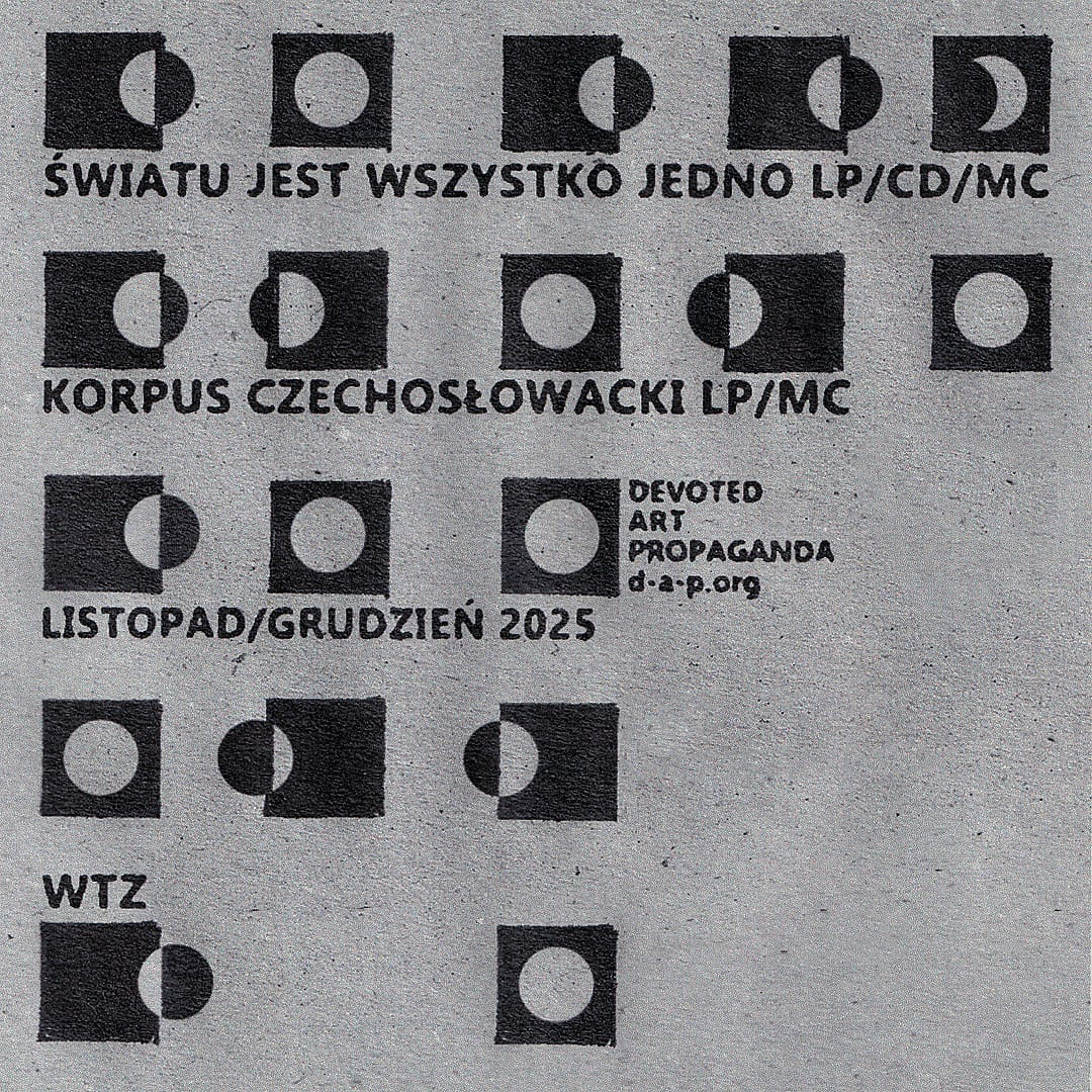 Allowing listeners the opportunity to immerse themselves in the project’s unique sounds once again, Korpus Czechosłowacki will be released on cassette and again on vinyl, while Światu Jest Wszystko Jedno will be available on LP, CD and cassette. The releases will take place in late November/early December, with no pre-orders.