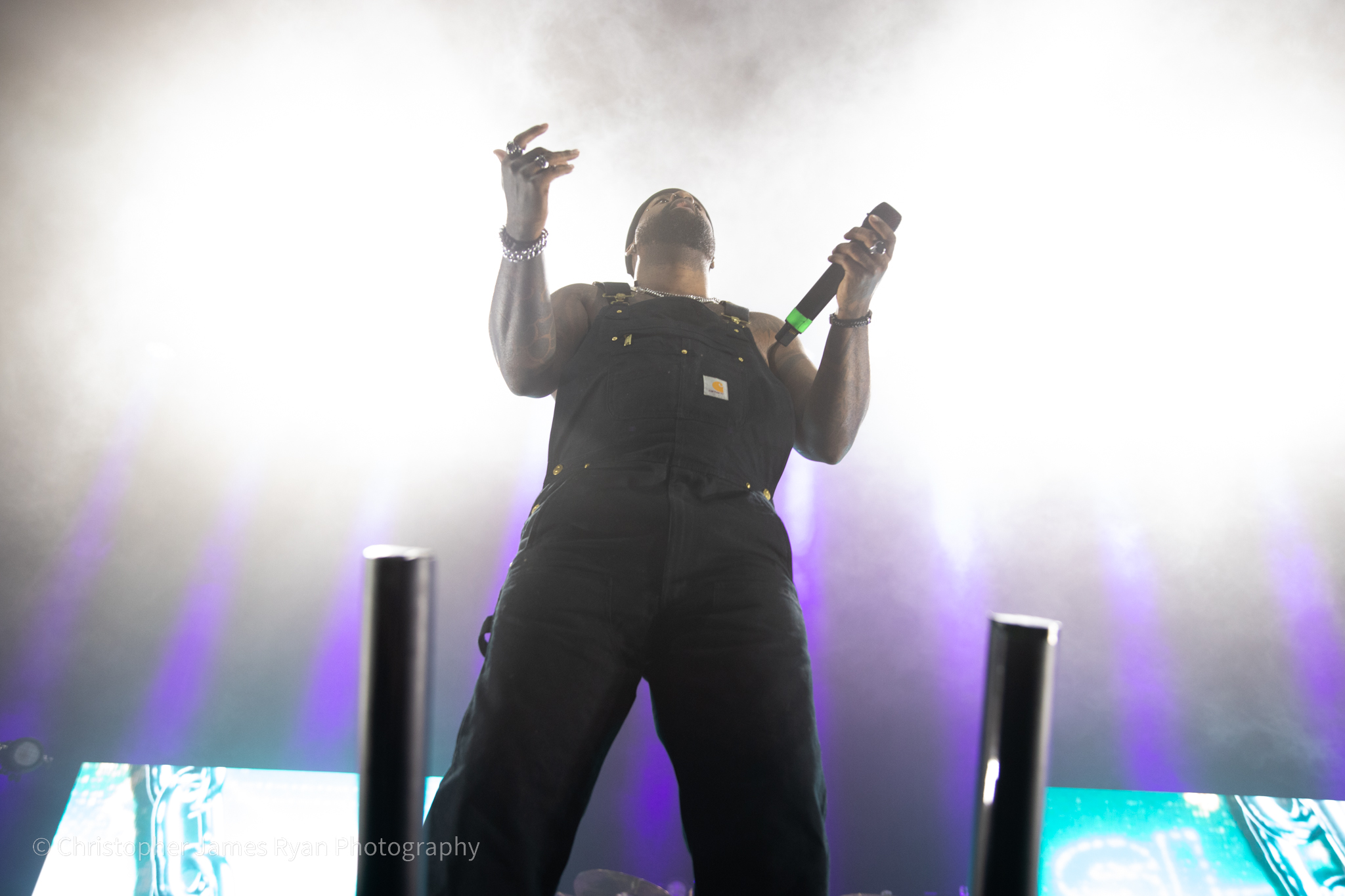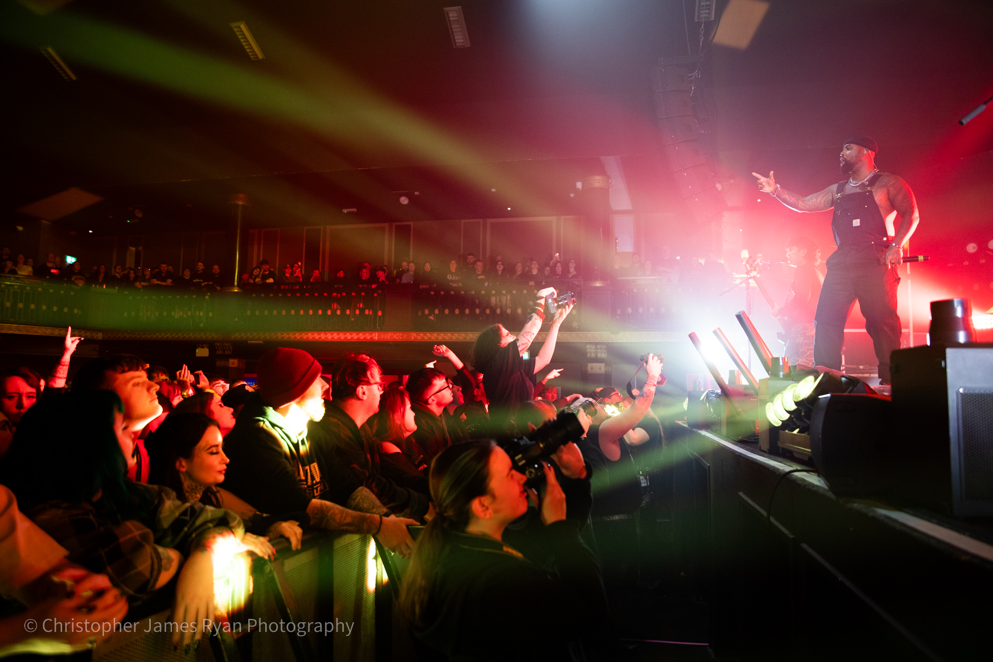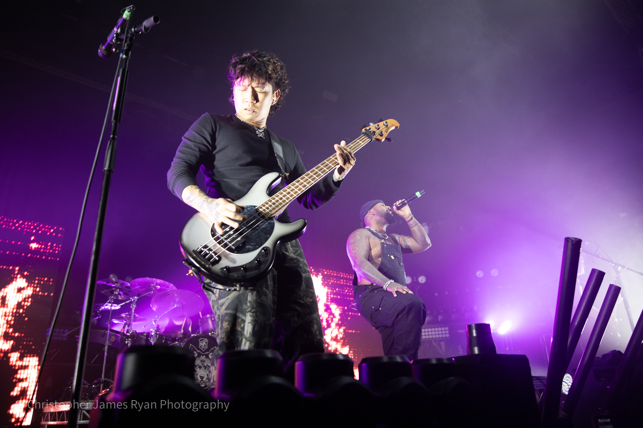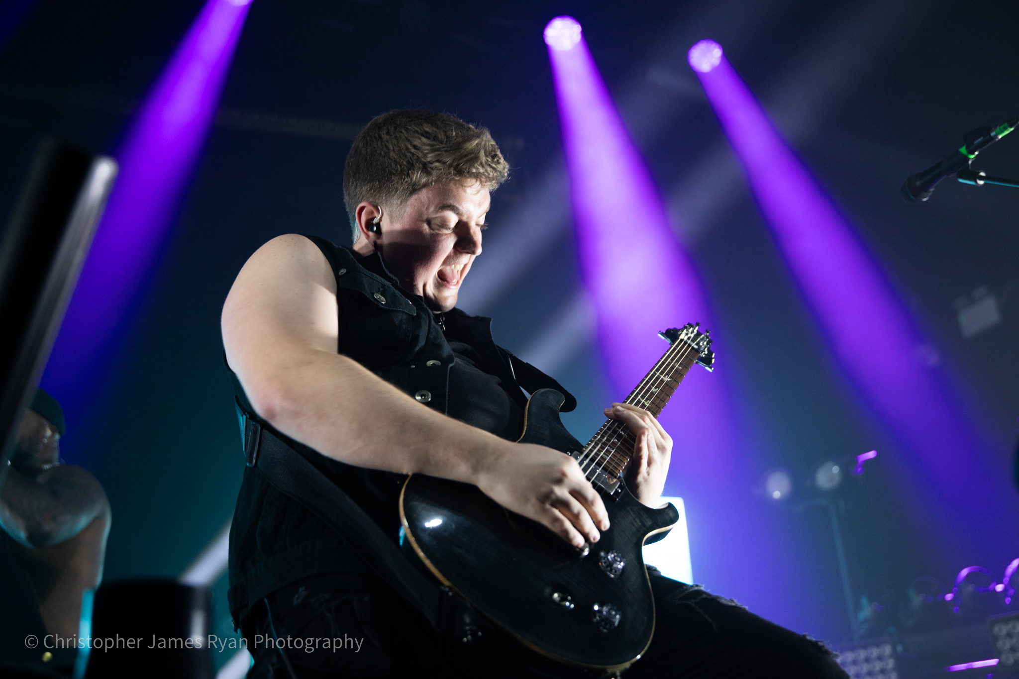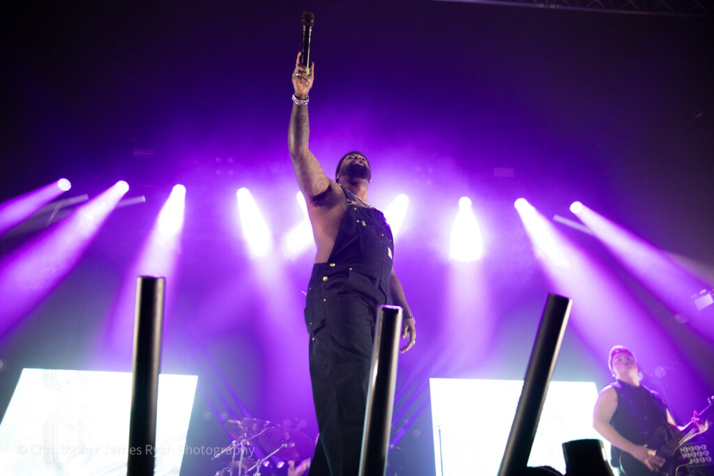 Next up was Sleep Theory and, riding high on all the momentum they’ve developed, they blasted straight into a high-octane set in Manchester complete with amazing visuals and a phenomenal light show. The mix is brilliant and you could feel the bass in your chest on phenomenon-heavy tracks like ‘Fallout‘ and ‘Enough‘, which also demonstrated how much energy the band could exude with bassist Paolo Vergara doing his insane high kicks.